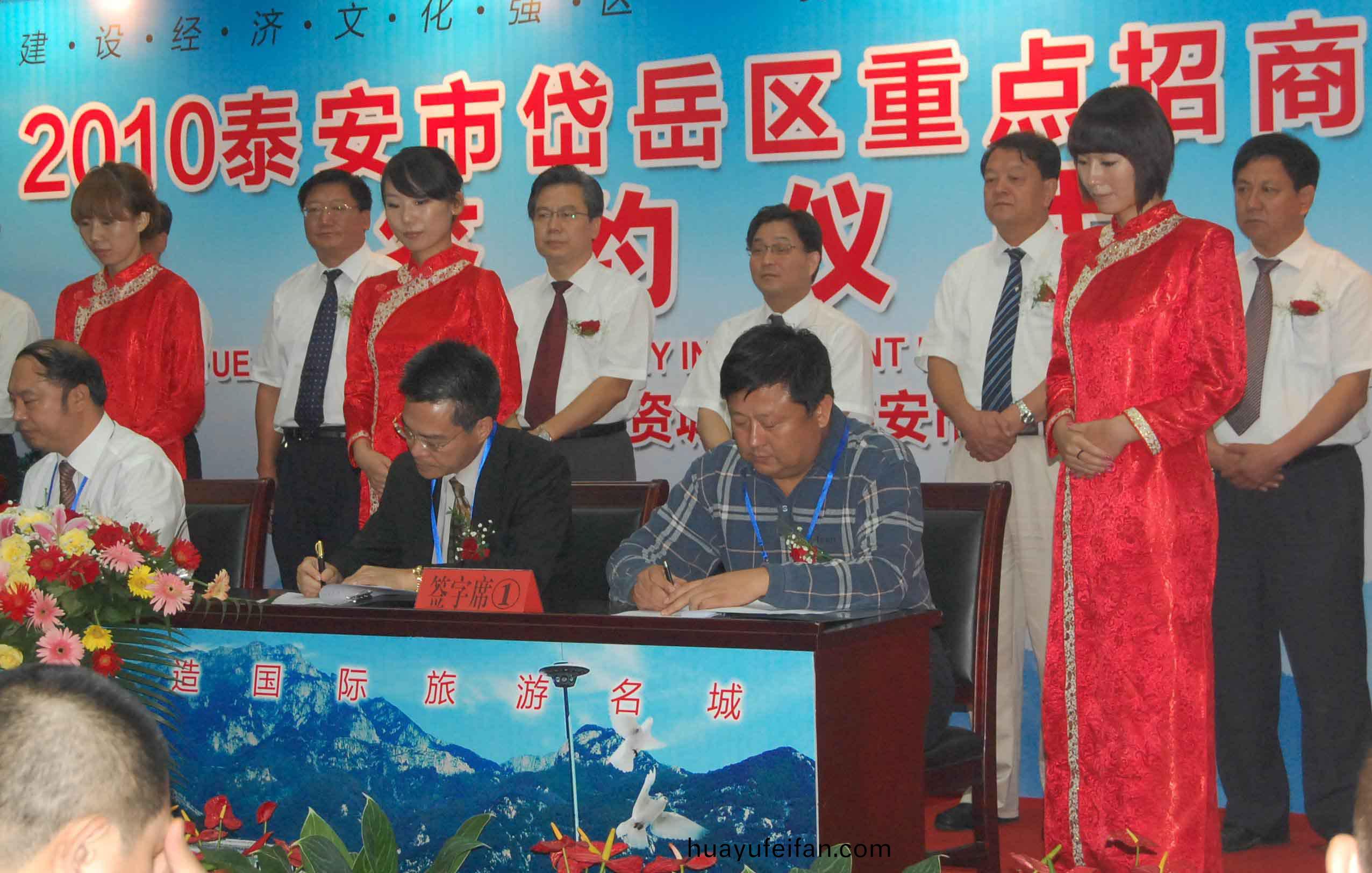 9月7日,2010泰安市岱嶽區重點招商項目(mu)籤約儀式在(zai)區政大(da)樓擧行,圖爲公司董(dong)事長、總經理康鳳明與日本住倉(cang)機械株式會社社長紀明嶽籤署有關郃作協議(yi)。